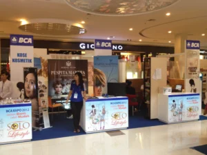 Merancang dan mengelola booth pameran yang inovatif untuk menarik target audience.